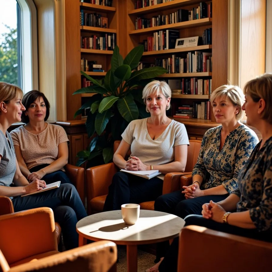 Intimate salon where everyone participates—applying ideas, asking questions, thinking together about our own lives
